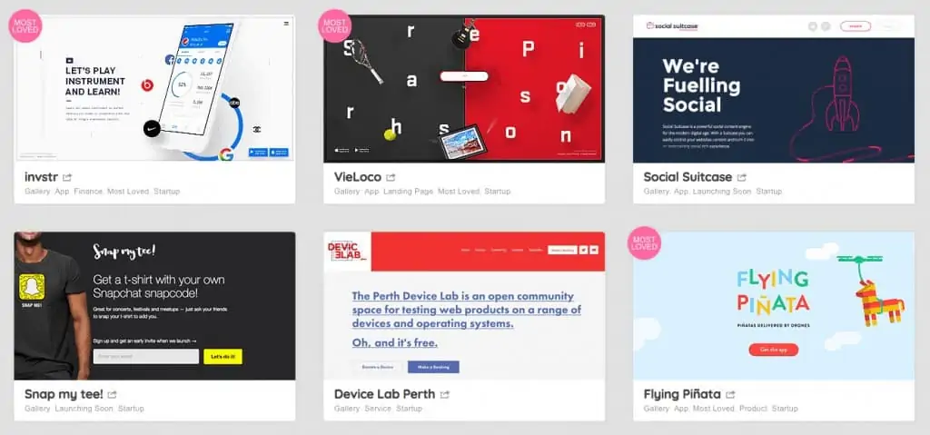 One page love is a site that collects landing pages from several industries and the one section I like the most is startups.